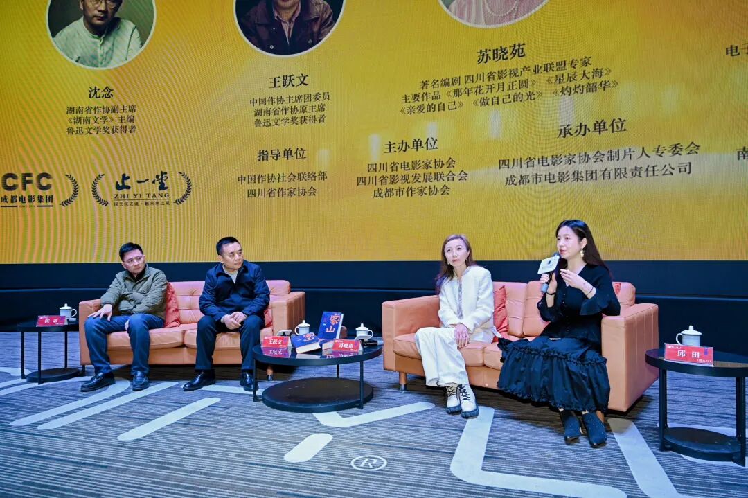 12月29日19:00,“跟著‘大家’看電影”項目第三期活動在成都新明電影院5號廳如期舉行,豪華的嘉賓陣容吸引了約200名觀眾參與這場文學與影視融合的文化盛宴。本次活動由中國作協(xié)主席團委員、湖南省作協(xié)原主席、魯迅文學獎得主王躍文擔任主講嘉賓。同樣是魯迅文學獎得主,湖南省作協(xié)副主席、《湖南文學》主編沈念;擁有《那年花開月正圓》《星辰大?!贰蹲鲎约旱墓狻贰蹲谱粕厝A》等作品的著名編劇蘇曉苑擔任對談嘉賓。青年評論家、成都電子科技大學文學院副教授、文學博士邱田擔任學術(shù)主持。